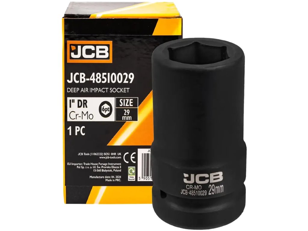 Cheie tubulară JCB cu impact adânc de 1" 29 mm, 6 laturi, Cr-Mo