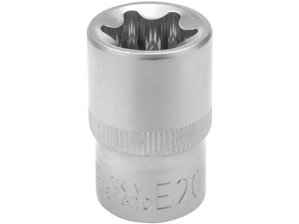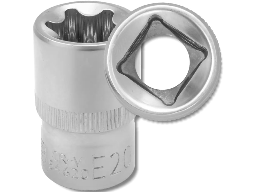 Cheia tubulară E20 de 1/2" este o unealtă fiabilă și durabilă, concepută pentru lucrul cu elemente de fixare cu profil Torx exterior. Datorită designului său precis, asigură o aderență excelentă la șuruburi și piulițe, reducând riscul de alunecare și deteriorare a cheilor tubulare.