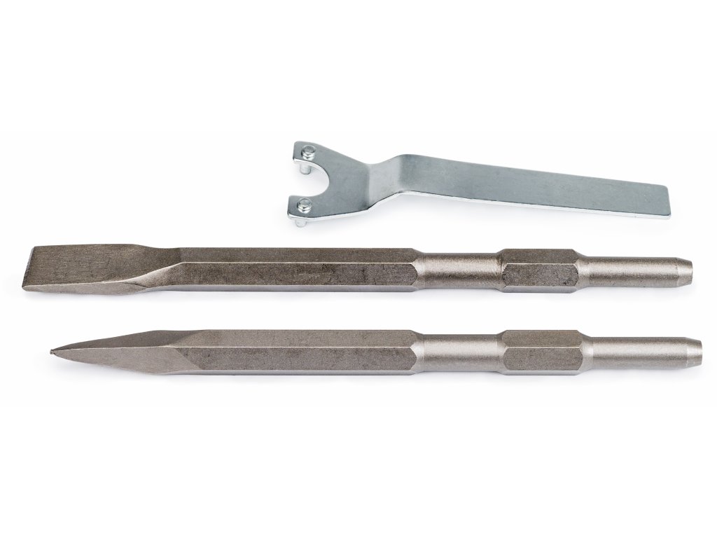 Ciocanul este livrat cu o daltă și un vârf ascuțit HEX 17mm, astfel încât să puteți începe lucrul imediat după primirea produsului.