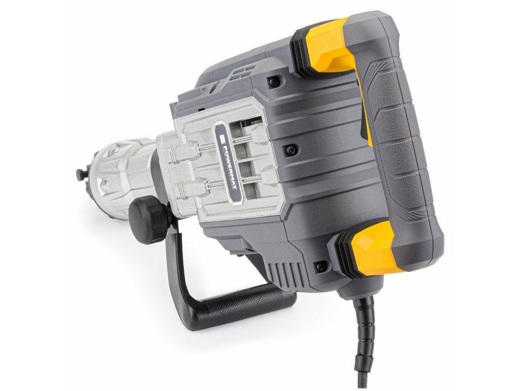 Ciocanul demolator POWERMAT este un dispozitiv inovator cu o putere de lucru ridicată de până la 3300 W și o forță de impact incredibilă de 65 J. Este ideal pentru lucrări de demolare pe structuri din beton, pereți, podele etc. Datorită materialelor de calitate utilizate în construcție, ciocanul este potrivit atât pentru profesioniști, cât și pentru amatori în domeniul construcțiilor. Performanța ridicată a dispozitivului nostru și construcția sa robustă asigură o muncă fiabilă și eficientă. Ciocanul este echipat cu un mâner suplimentar plasat aproape de centrul dispozitivului, ceea ce contribuie la manevrarea simplă și controlul precis al ciocanului în raza de 360 de grade.