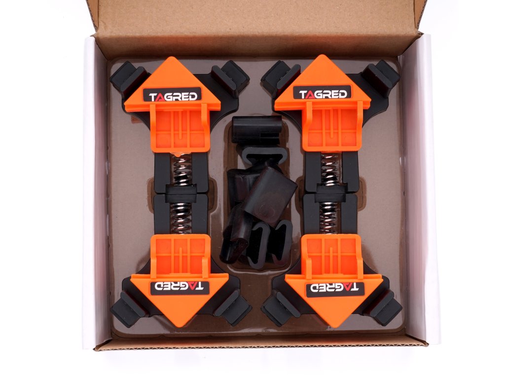 Clemele profesionale de tâmplărie TAGRED permit fixarea rapidă și ușoară a plăcilor și cadrelor la un unghi de 90°, ideale pentru montarea de rafturi, dulapuri mici și rame. Aceste cleme reprezintă un ajutor excelent în procesul de montaj fie pentru șuruburi, fie pentru lipirea plăcilor, atât la îmbinări de tip "T", cât și la îmbinări unghiulare, inclusiv plăci cu o grosime de 5 - 22 mm. Clemele noastre dispun de o funcție practică de operare cu o singură mână, ceea ce înseamnă că cealaltă mână este liberă pentru alte sarcini!