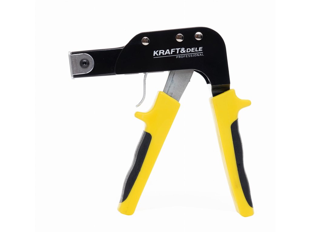 Clește de sertizat pentru dibluri tip Molly universal Kraft&Dele model KD10574, destinat pentru montarea rapidă a diblurilor în plăci de ghips-carton sau în materiale cu spațiu gol.