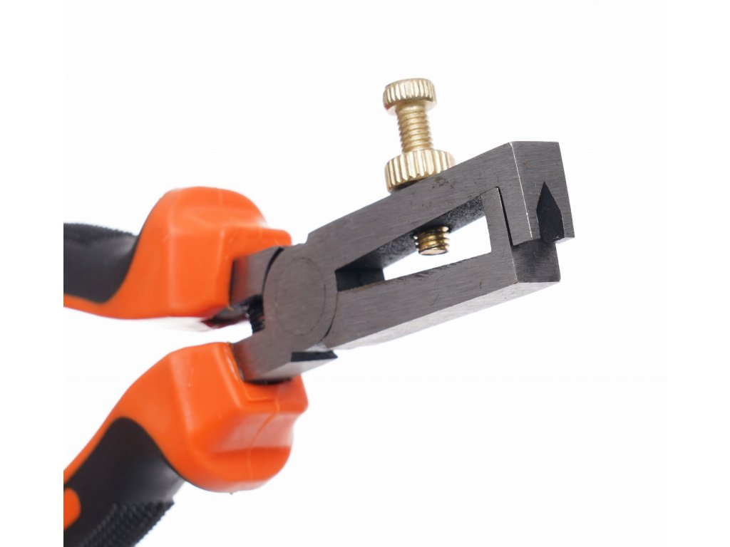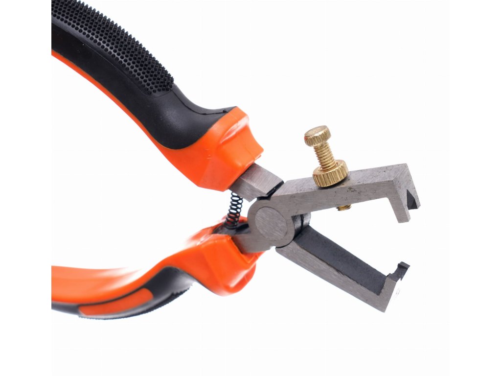 Clește pentru dezizolarea firelor KD10811, marca Kraft&Dele. Esențial în orice garaj sau atelier. Fabricat din oțel călit de înaltă calitate. Mânerele ergonomice sunt acoperite cu cauciuc moale antiderapant.