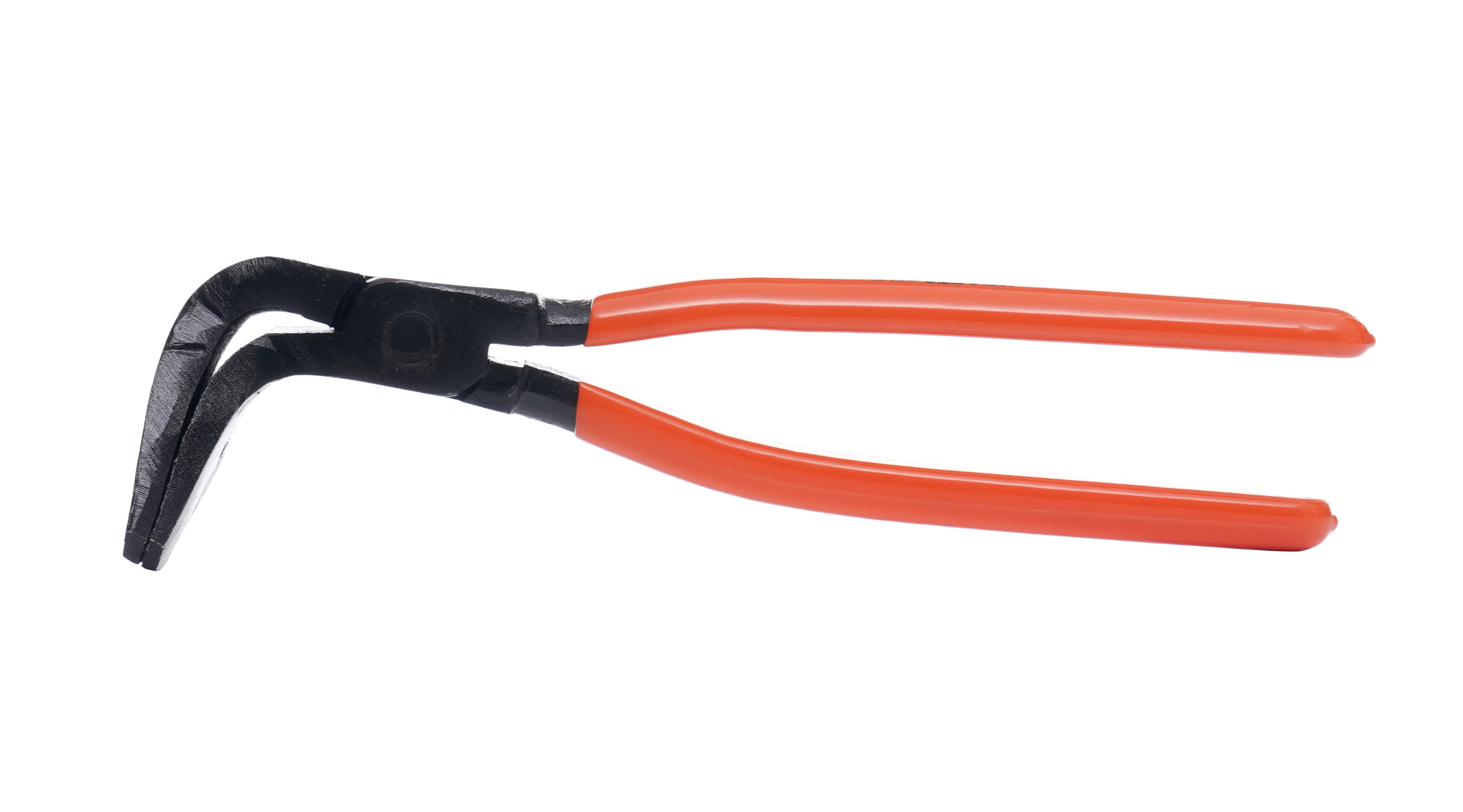 Lungimea totală a cleștelui este de 275 mm, fălcile fiind orientate față de axă la un unghi de 90°.