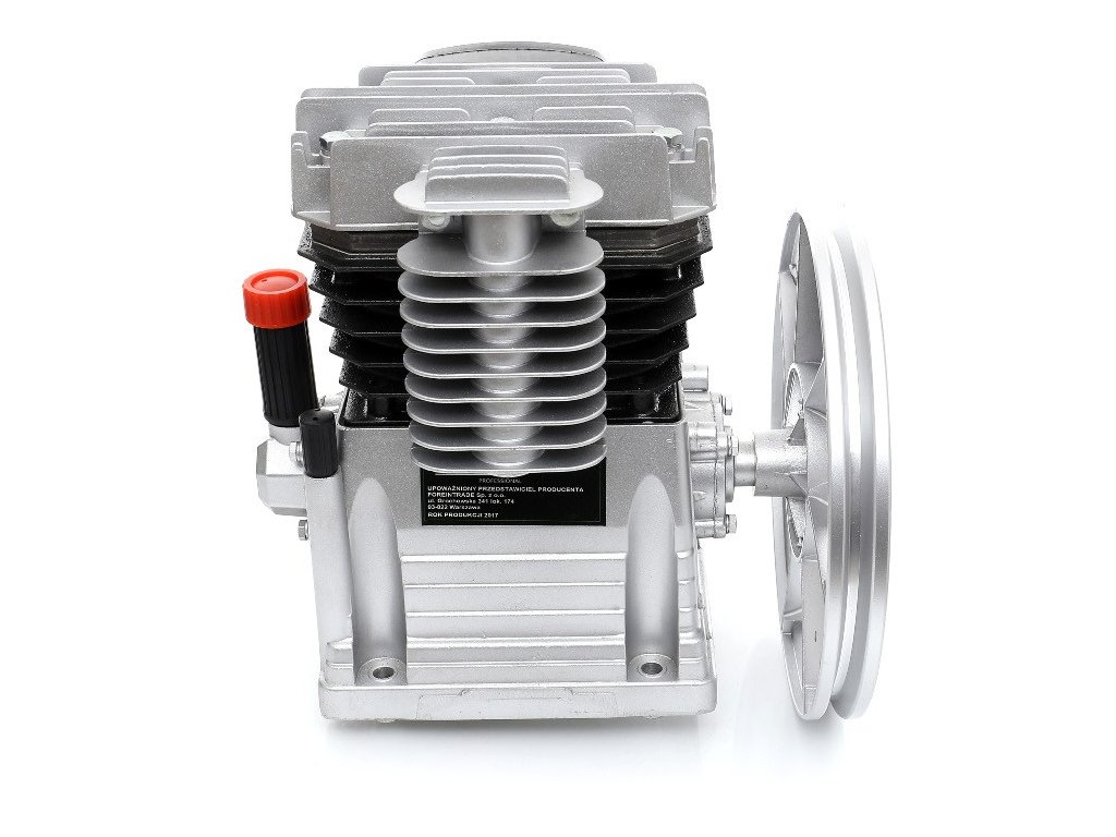 Roata cu curea, special modelată, mare, îndeplinește funcția de ventilator, răcind și sporind performanțele și durabilitatea compresorului.