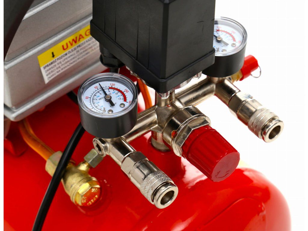 2 manometre mari orientate în sus pentru citirea facilă a valorilor (spre deosebire de modelele mai ieftine ale unor comercianți, unde manometrele sunt orientate lateral și este necesar să te apleci), și un robinet de golire confortabil.