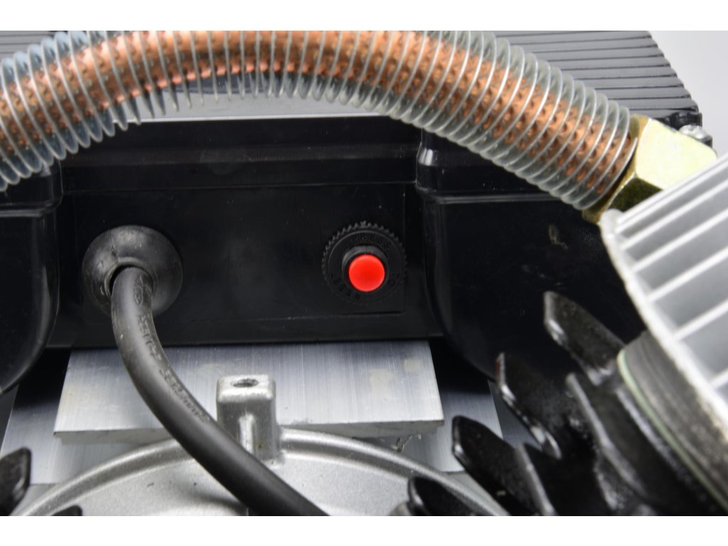 Compresorul este dotat cu un regulator de presiune, care permite setarea valorii necesare a presiunii în rezervor. Datorită celor doi pistoane, se asigură o funcționare de lungă durată și fiabilă.