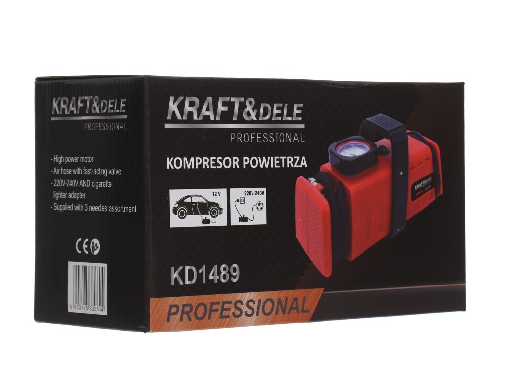 Compresor auto 12/230 V KD1489 poate fi alimentat atât din priza brichetei auto 12V DC, cât și din priză de rețea 230V AC.