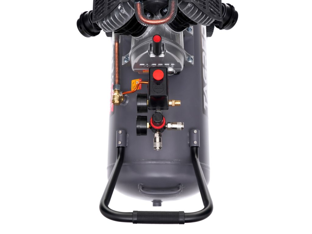 Performantul compresor de ulei TAGRED Pro-Line este un dispozitiv robust și fiabil, conceput pentru muncă intensă în atelier, garaj și uz casnic. Datorită construcției cu două pistoane, performanței ridicate și presiunii maxime de 10 bar, oferă un flux stabil de aer comprimat pentru o gamă largă de unelte pneumatice. Construcția durabilă cu cilindri din fontă și un sistem eficient de răcire asigură o durată lungă de viață chiar și în condiții de sarcină pe termen lung.