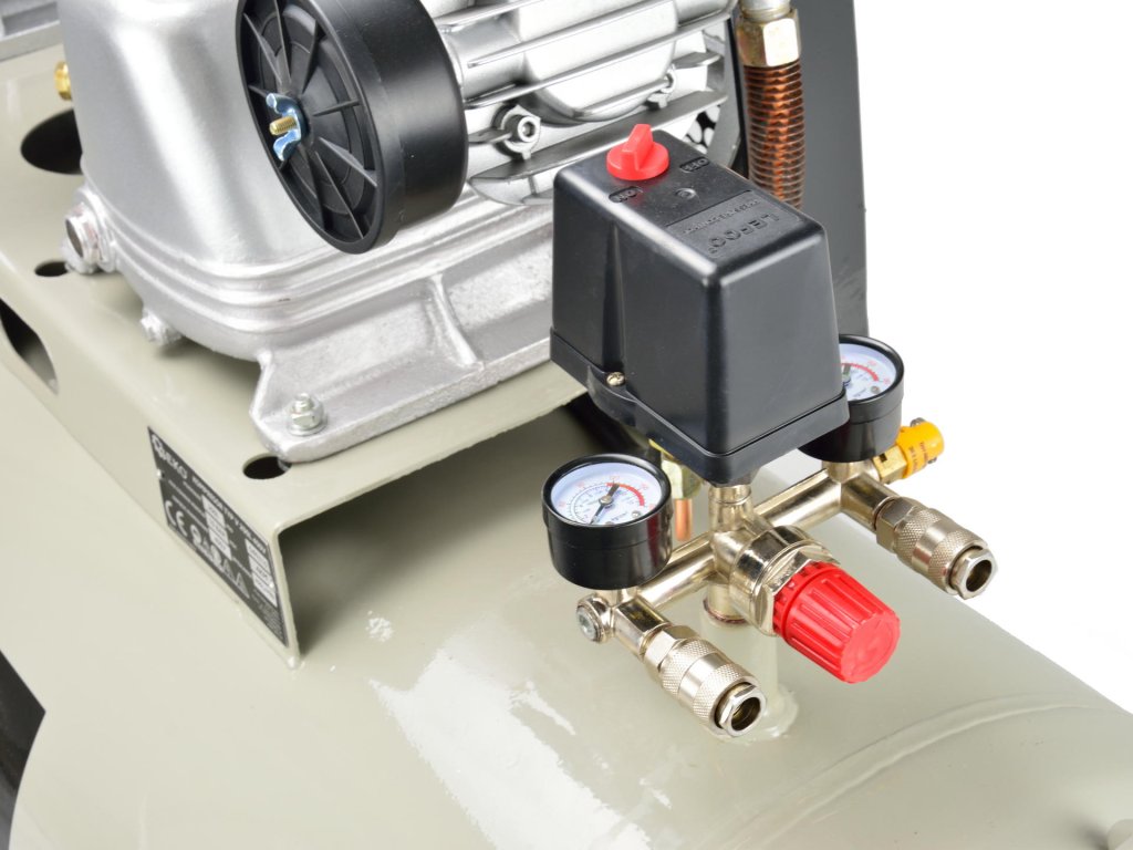 Compresorul cu ulei dispune de un motor puternic de 4 HP și un volum al rezervorului de 200 litri. Acest compresor este echipat cu un regulator de presiune, care permite setarea precisă a valorii presiunii din rezervor. Datorită celor trei pistoane, asigură o funcționare de lungă durată și fiabilă.