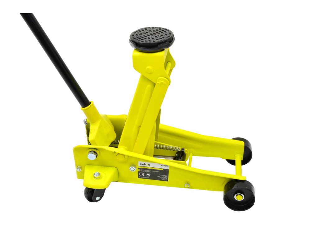 Cric hidraulic Keltin – robust și de încredere, ideal pentru toate nevoile tale de ridicare. Datorită capacității sale maxime de ridicare de 3 tone, poate face față cu ușurință sarcinilor solicitante. Cele patru roți, dintre care două pivotante, asigură mobilitate ridicată și manipulare ușoară.