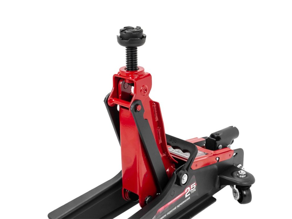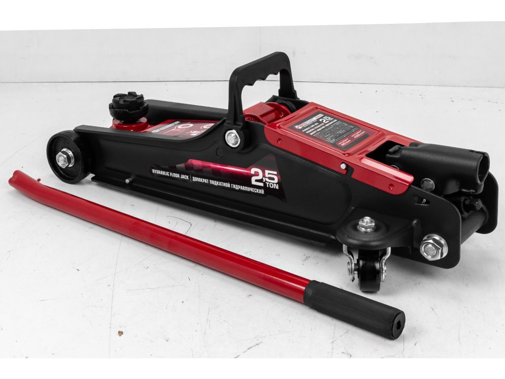 Un cric fabricat profesional, echipat cu o pompă puternică, datorită căreia poate ridica cu ușurință vehicule și obiecte cu o greutate maximă de până la 2500 kg. Dispozitivul este potrivit nu numai în situații de urgență, ci și pentru lucrări independente la mașină, cum ar fi schimbarea roților, a uleiului sau a suspensiei.