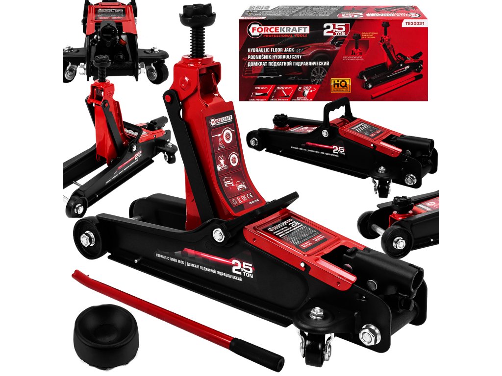 Cricul Forcekraft este pompat cu ajutorul unui mâner, iar vehiculul este ridicat ușor. De asemenea, asigură o coborâre lină și delicată a vehiculului. Pur și simplu rotiți supapa, iar presiunea va coborî încet și ușor mașina.
