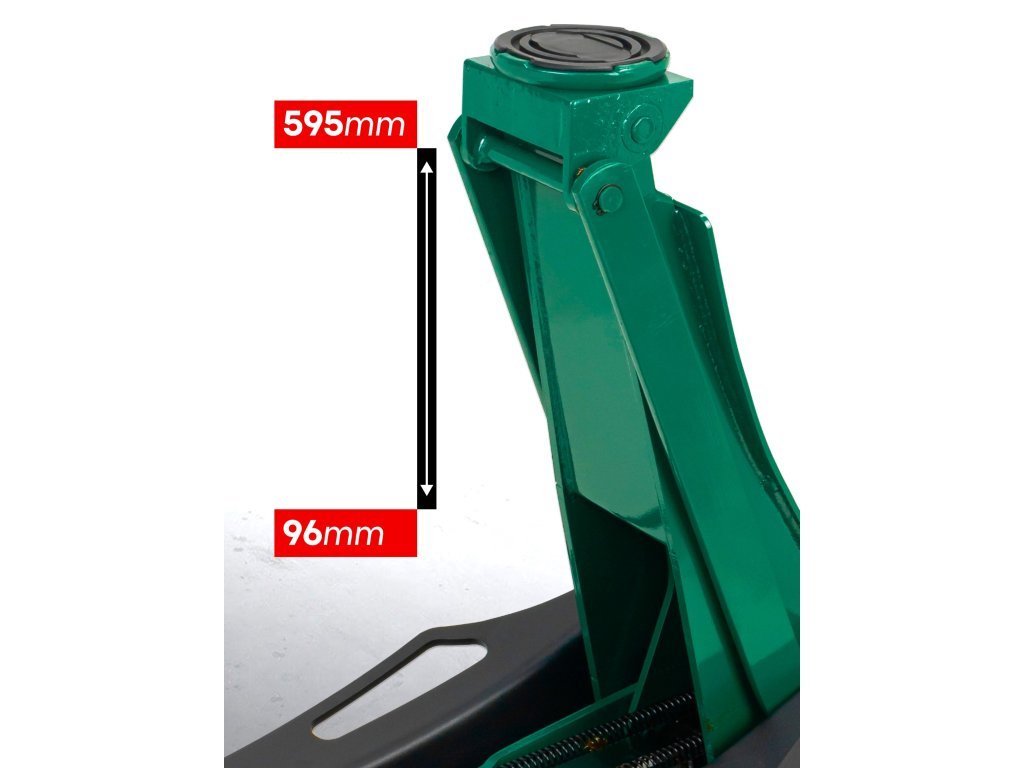 Unul dintre parametrii cheie ai acestui model. Înălțimea minimă de ridicare de doar 96 mm permite introducerea cricului chiar și sub mașini cu șasiu extrem de jos - inclusiv mașini sport și mașini tunate.