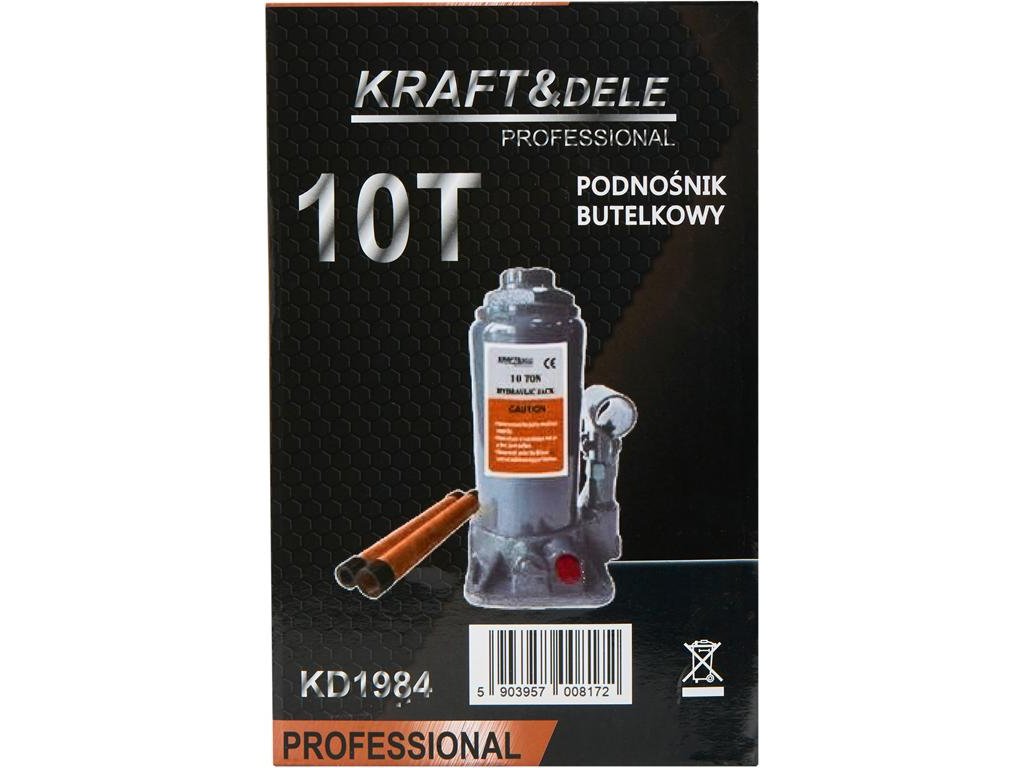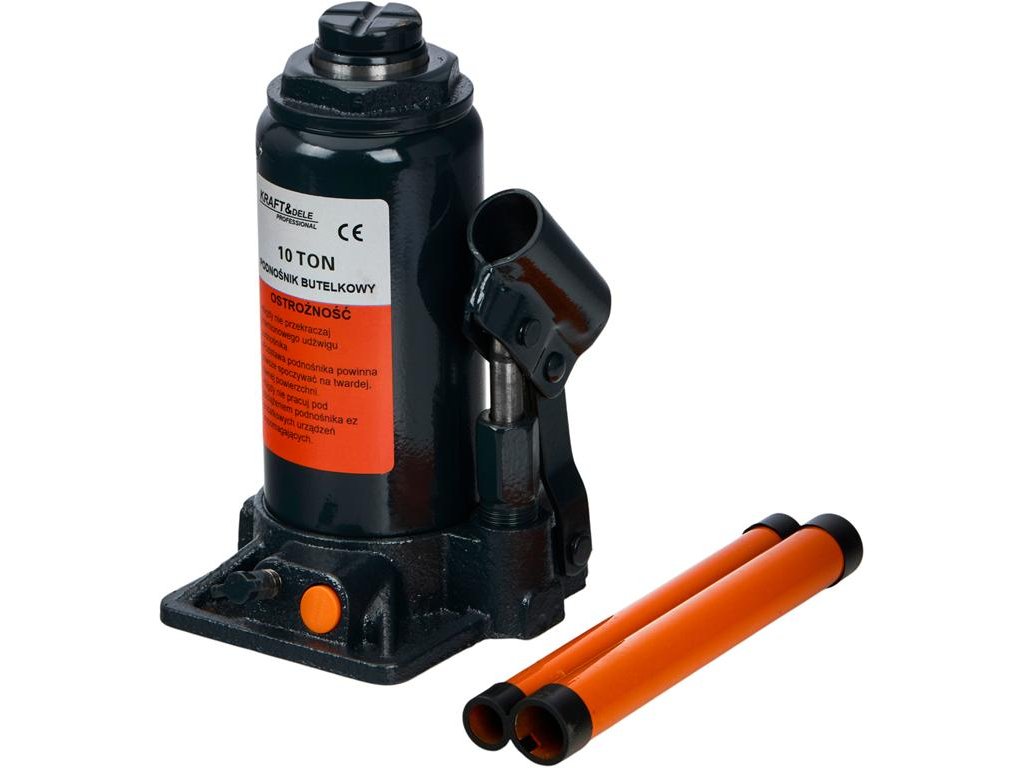 Cric pentru sticle de la Kraft&Dele model KD1984 cu construcție de stâlp permite ridicarea greutăților de până la 10 tone. Este un instrument indispensabil pentru lucrări care necesită utilizarea treptată a unei mari forțe, cum ar fi ridicarea unei părți a unui vehicul sau a altor mașini.