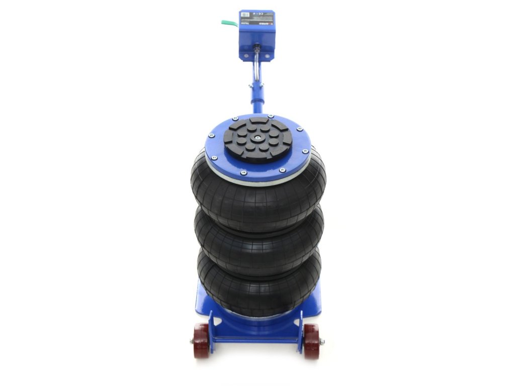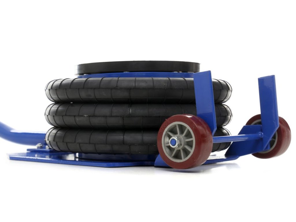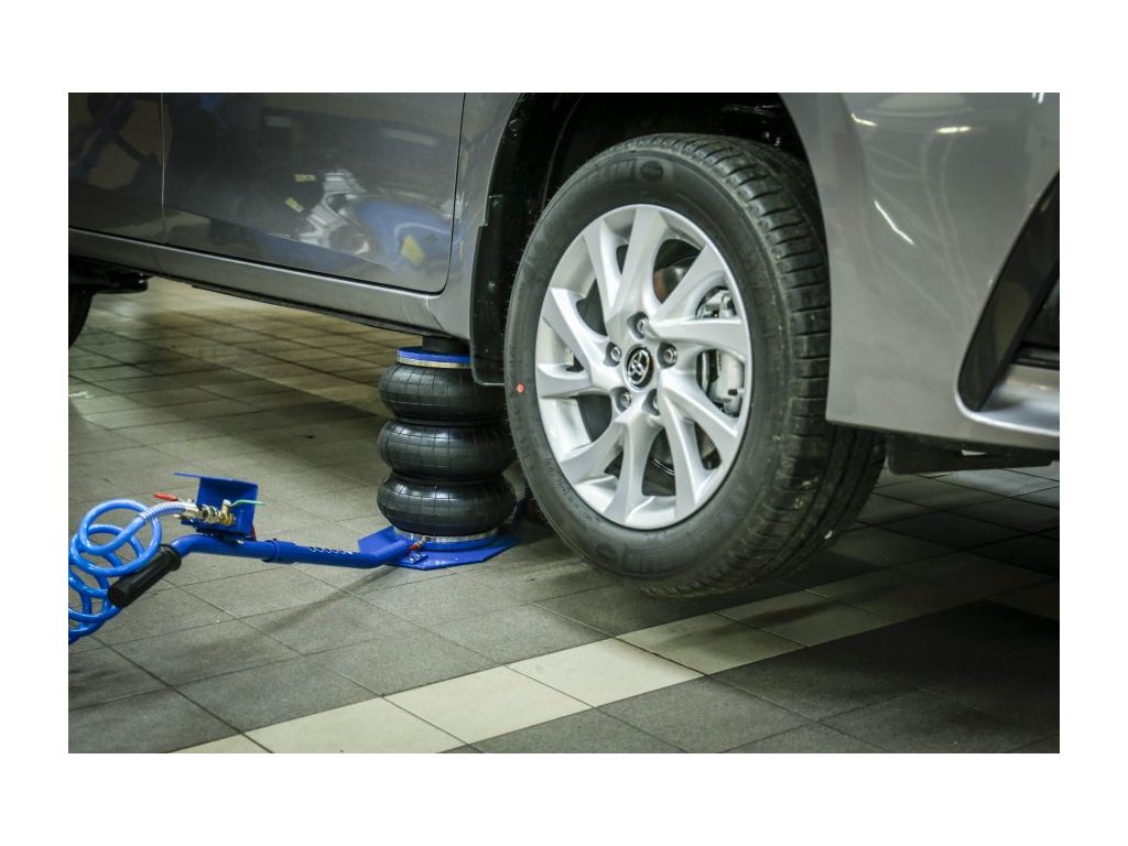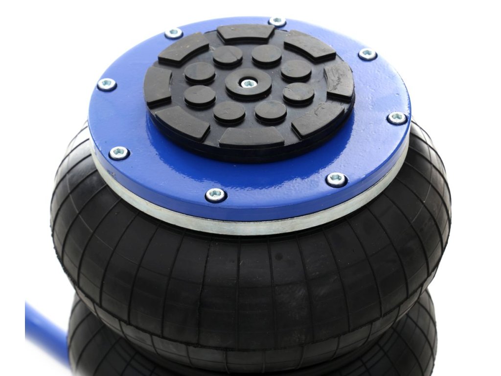 În pachet, veți primi de asemenea un inel de cauciuc, care protejează pragurile și alte elemente de susținere împotriva zgârieturilor și deteriorării. Cauciucul permite ridicarea în siguranță și facilitează plasarea cricului în locul corespunzător, accelerând și simplificând considerabil lucrul. Cricul este alimentat de aer comprimat la presiuni de lucru de la 5 până la 10 bari.
