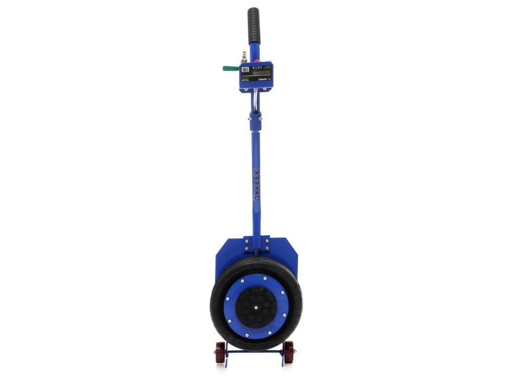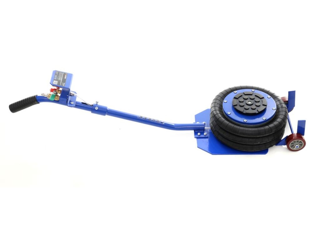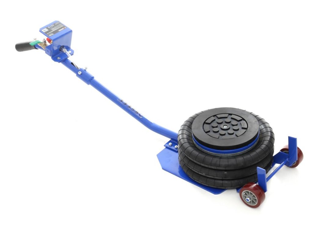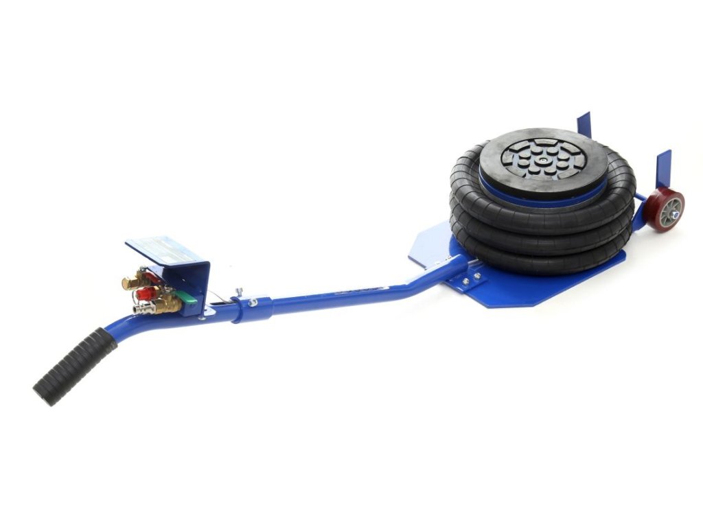 În pachet, veți primi de asemenea un inel de cauciuc, care protejează pragurile și alte elemente de susținere împotriva zgârieturilor și deteriorării. Cauciucul permite ridicarea în siguranță și facilitează plasarea cricului în locul corespunzător, accelerând și simplificând considerabil lucrul. Cricul este alimentat de aer comprimat la presiuni de lucru de la 5 până la 10 bari.