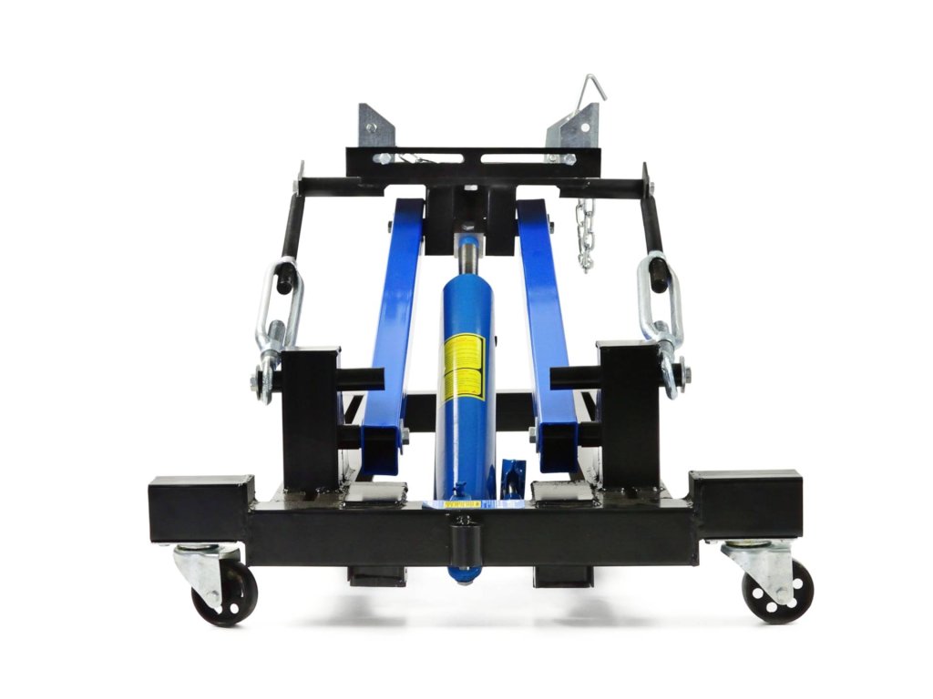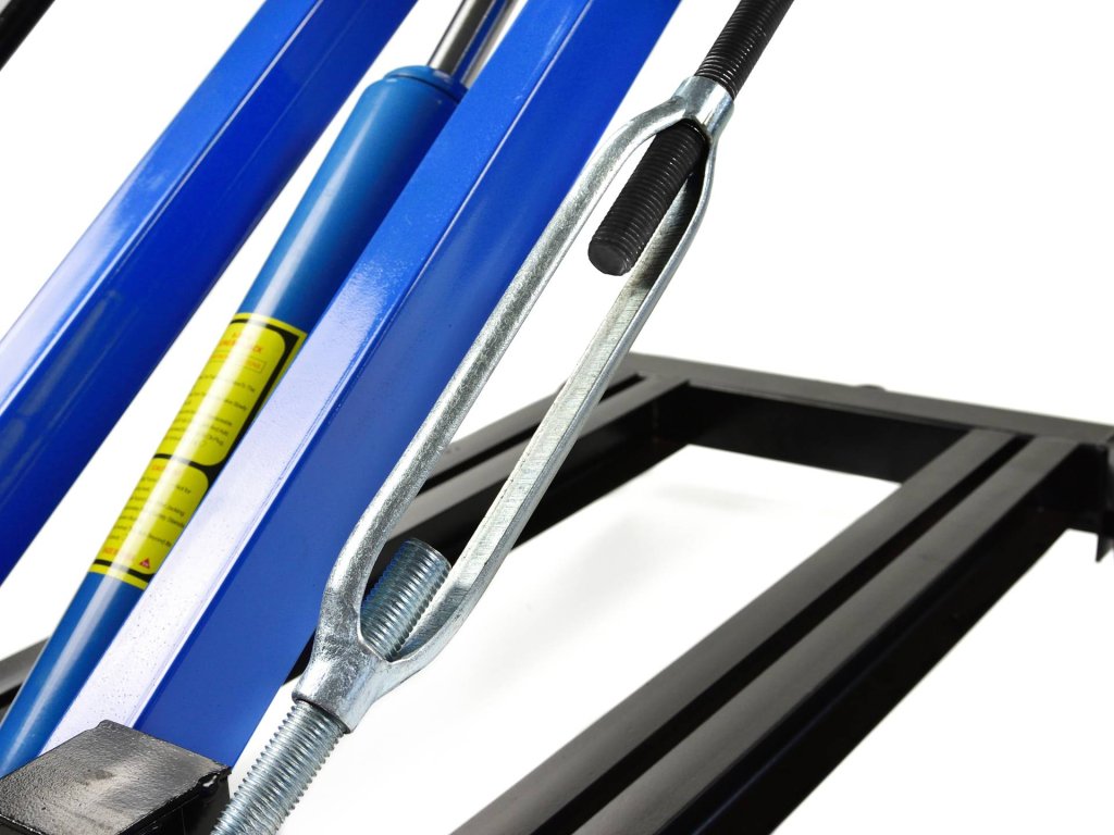 Dispune de două șuruburi pentru reglarea unghiului de înclinare a bazei de montaj. Pentru o utilizare ușoară, cricul este echipat cu un set de roți, care include două roți pivotante și două roți fixe. Setul include, de asemenea, suporturi ajustabile și lanț pentru fixarea în siguranță a elementului demontat.