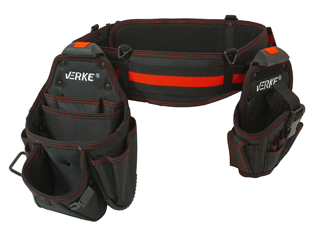 Curea pentru scule cu două buzunare glisante, cu multe compartimente și o buclă pentru ciocan. Fiecare buzunar este atașat cu un suport de clemă . Cureaua ergonomică puternică poate fi închisă cu Velcro , un fermoar și, suplimentar, se poate fixa cu o cataramă. Include suporturi pentru montarea bretelelor.