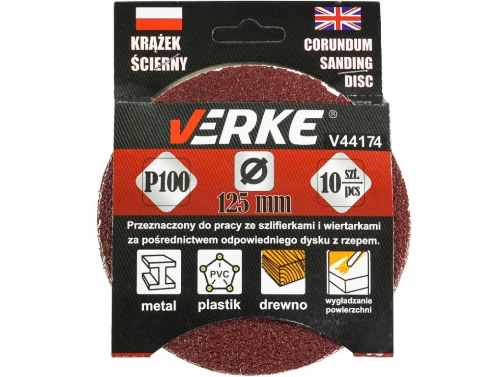 Disc abraziv 125 mm P100 10 buc VERKE V44174