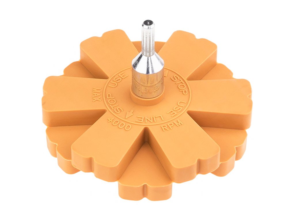 Discul de cauciuc este instrumentul ideal pentru îndepărtarea reziduurilor de adeziv și a benzii de greutate care au fost lipite de roțile din oțel și aluminiu. Acest disc va ușura procesul de curățare și va asigura aspectul perfect al roților dumneavoastră.