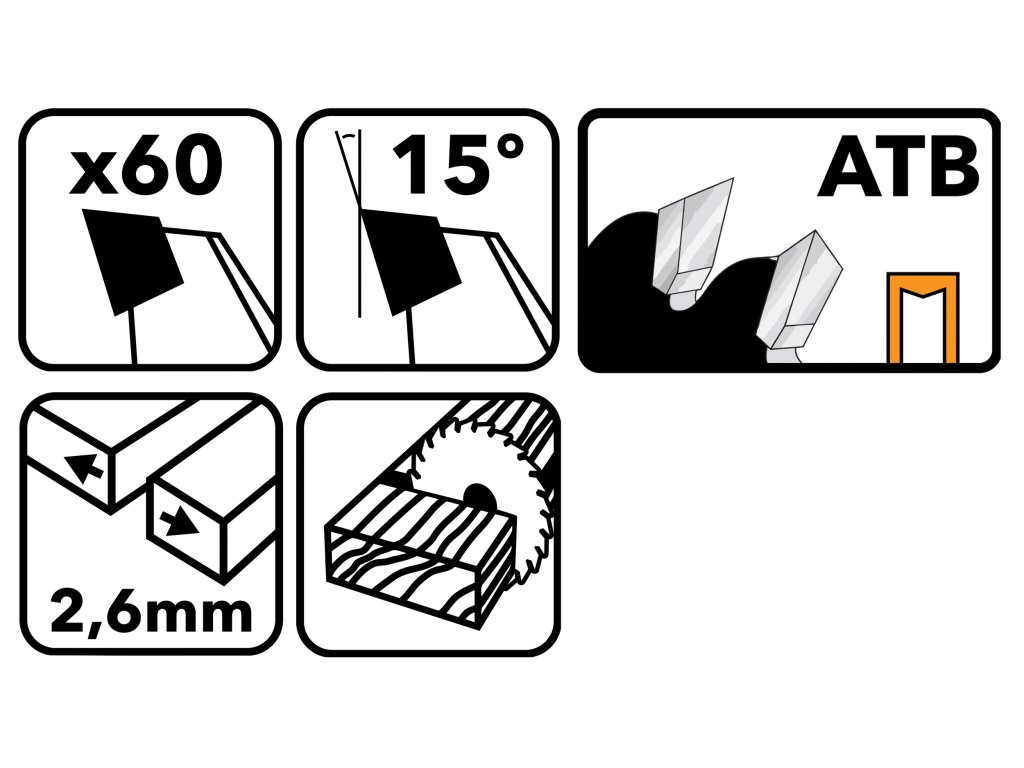 Discul POWERMAT este fabricat din oțel durabil și conține 60 de dinți de tăiere. Este ideal pentru utilizare cu ferăstrăuri manuale, microunde și ferăstraie de masă.