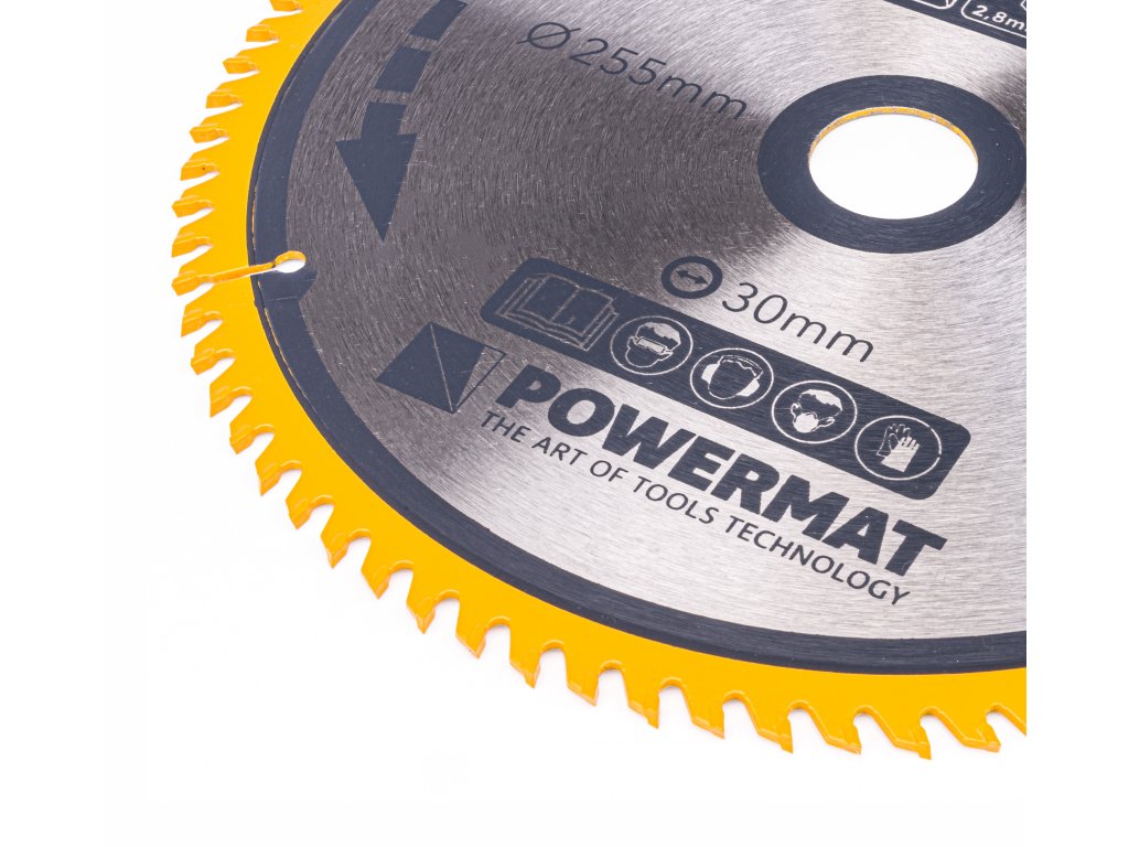 Discul POWERMAT este conceput pentru tăieri de precizie în lemn și toate materialele lemnoase, inclusiv placaj, panouri, plăci aglomerate, materiale plastice și materiale moi. Este optimizat pentru turații foarte ridicate, garantând tăieri ușoare și rapide.