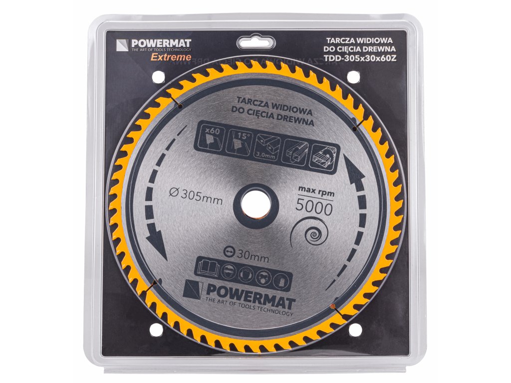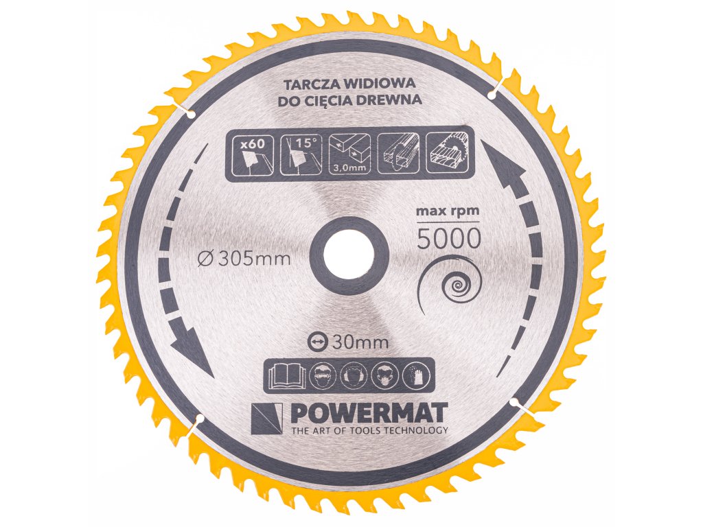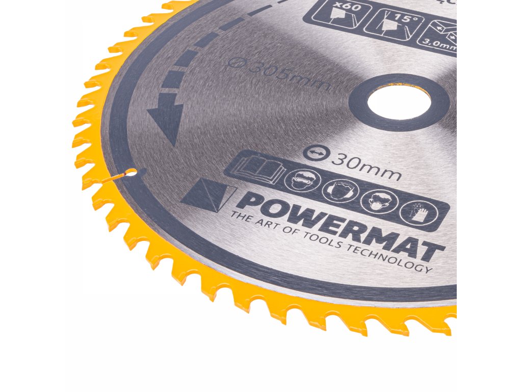 Disc POWERMAT este fabricat din oțel călit și dispune de 60 de dinți de tăiere, asigurând performanțe excepționale la tăiere.