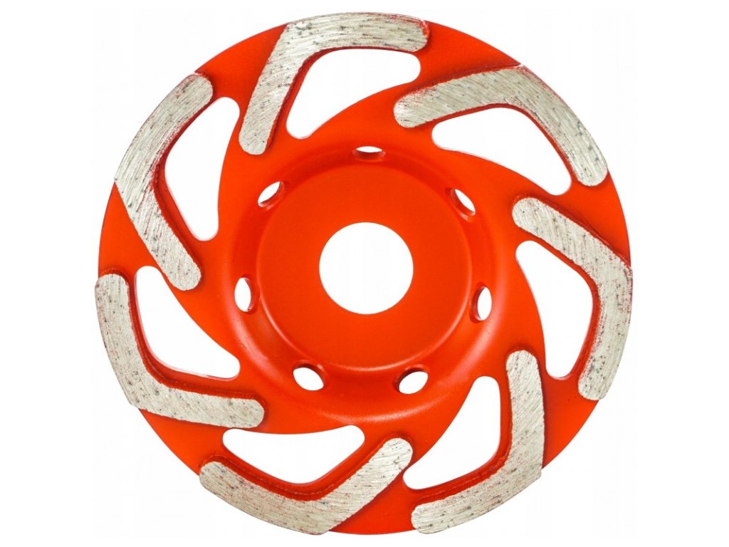 Roata diamantată în formă de L pentru șlefuirea materialelor dure de construcție are o concentrație excepțional de mare de diamant de înaltă calitate. Discul oferă șlefuire de cea mai bună calitate pe toată durata vieții sale. Aceste proprietăți îmbunătățesc calitatea șlefuirii și prelungesc durata de viață a roților. Utilizarea orificiilor de răcire prelungește semnificativ durata de viață a lamei.