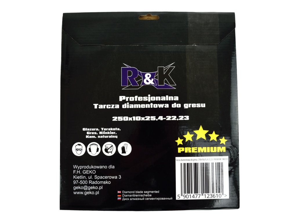 Disc diamantat "hot pressed" gresie 250x10x25,4-22,23 R&K PREMIUM RK0103