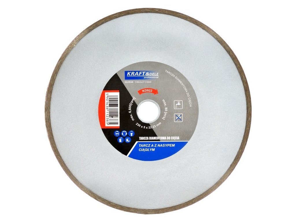 Disc de tăiere 230x5x22,23 KD922 - Disc diamant cu acoperire continuă de cea mai înaltă calitate, pentru tăiere uscată și umedă, de la firma KRAFT&DELE, destinat prelucrării materialelor de construcții.