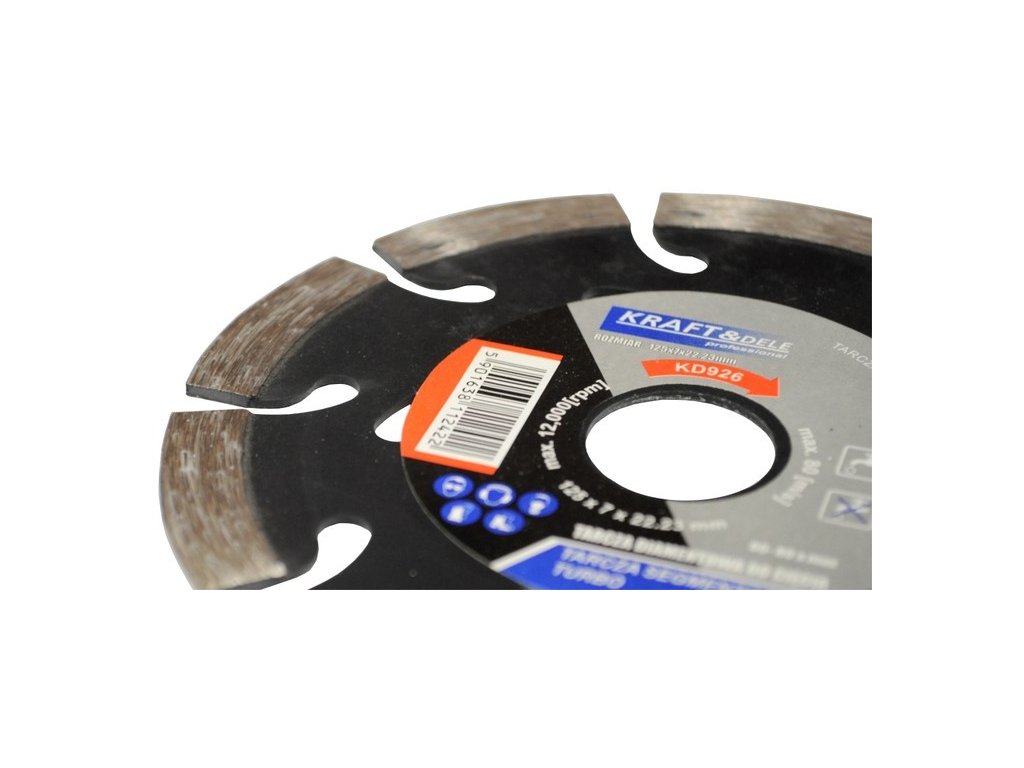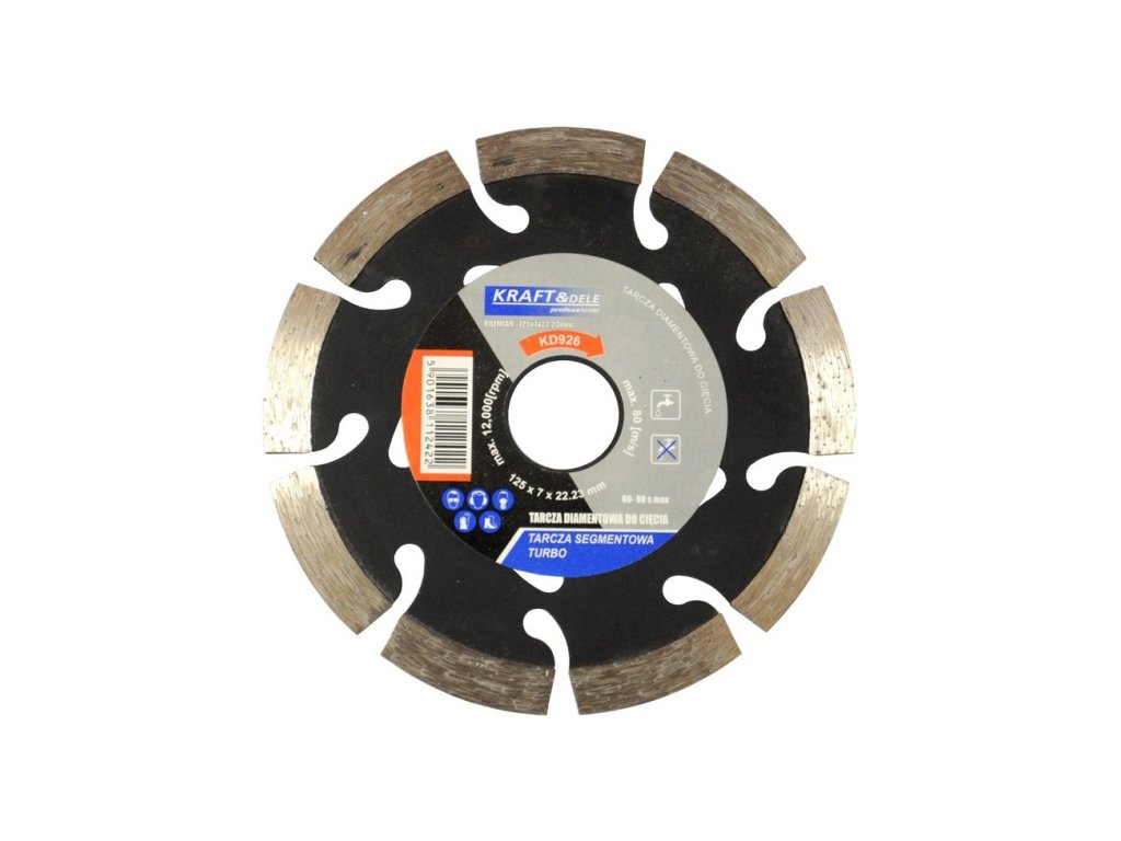 Disc de tăiere segmentat 125x7x22,23 TURBO KD926 – disc diamant segmentat de înaltă calitate pentru tăiere uscată și umedă, de la KRAFT&DELE, este destinat prelucrării materialelor de construcție.
