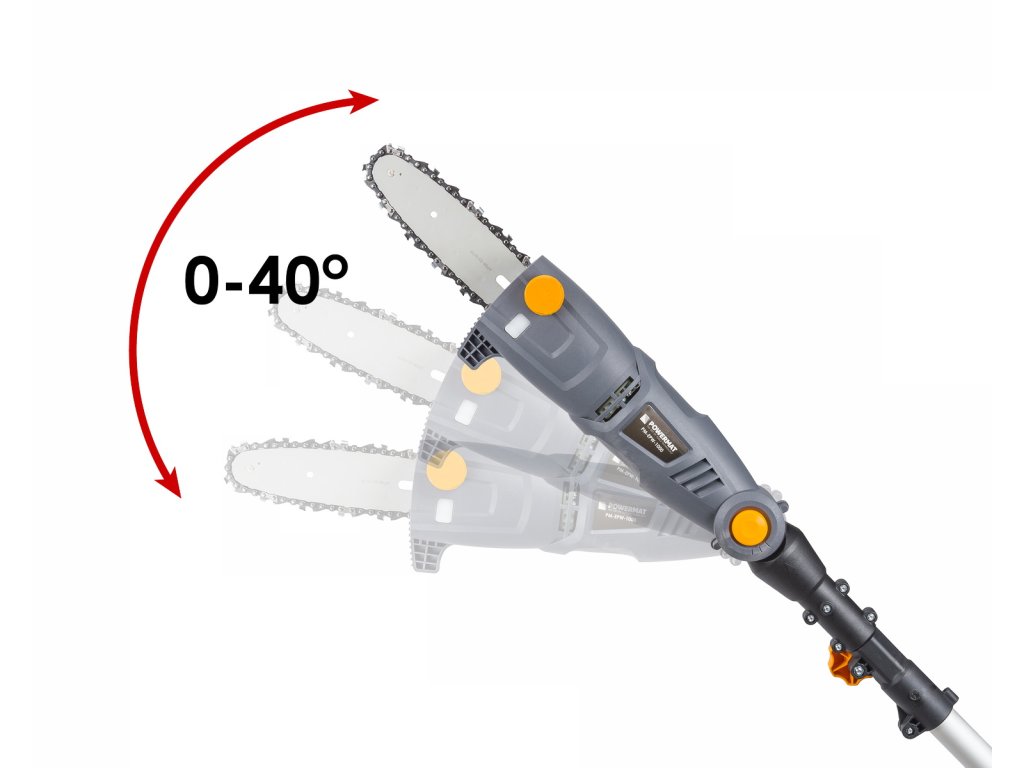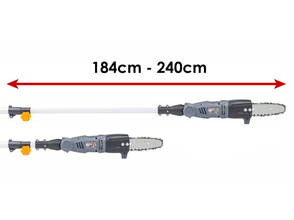 Drujba electrică pe tijă telescopică 240 cm PM-EPW-1000 de la Powermat este ideală pentru tăieri eficiente. Este echipată cu o bară de ghidaj de calitate și un lanț cu reglare rapidă și ușoară a lungimii brațului în intervalul de la 184 cm până la 240 cm și a unghiului de tăiere al capului în trei trepte.