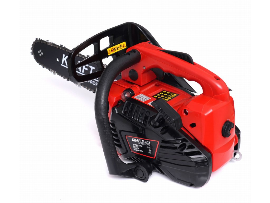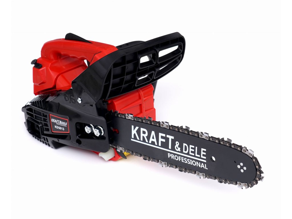 Fierăstrăul cu lanț marca KRAFT&DELE cu putere de 1,2 KM se numără printre cele mai dinamice, având o construcție solidă și robustă. Va fi un ajutor de încredere chiar și după ani de utilizare în lucrări de construcții din lemn, la fermă și în agricultură, în livadă.
