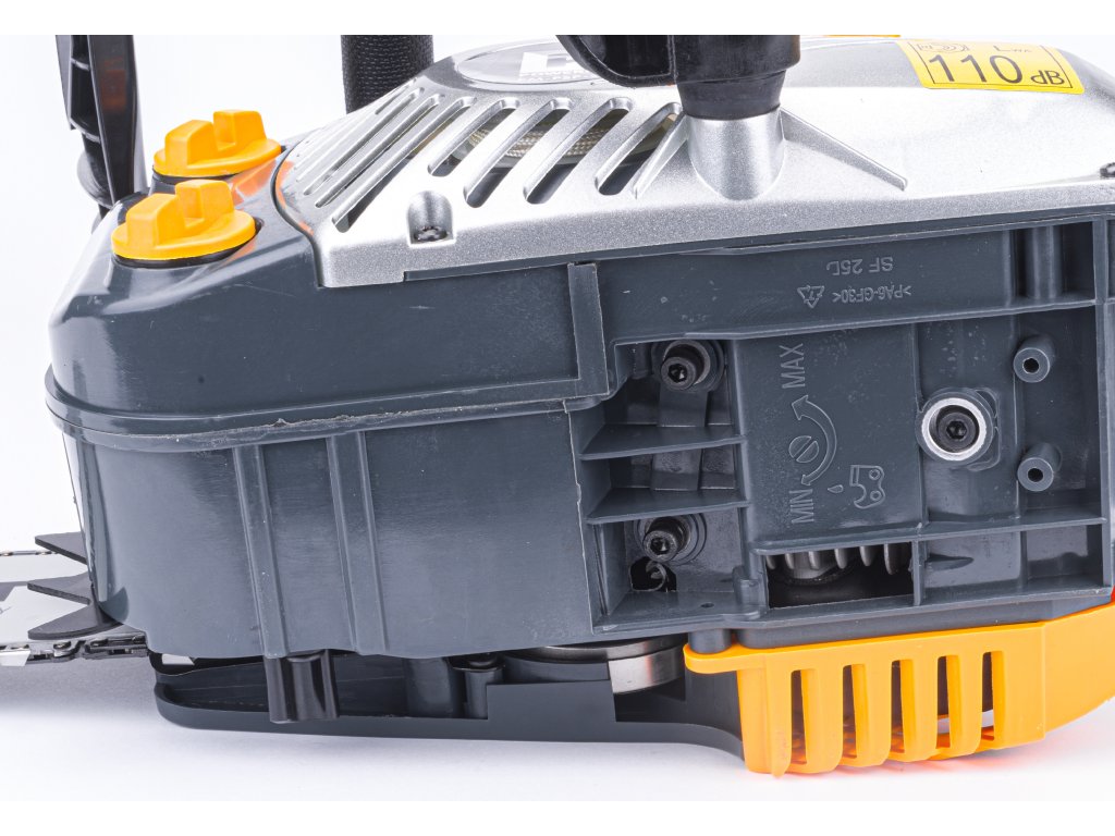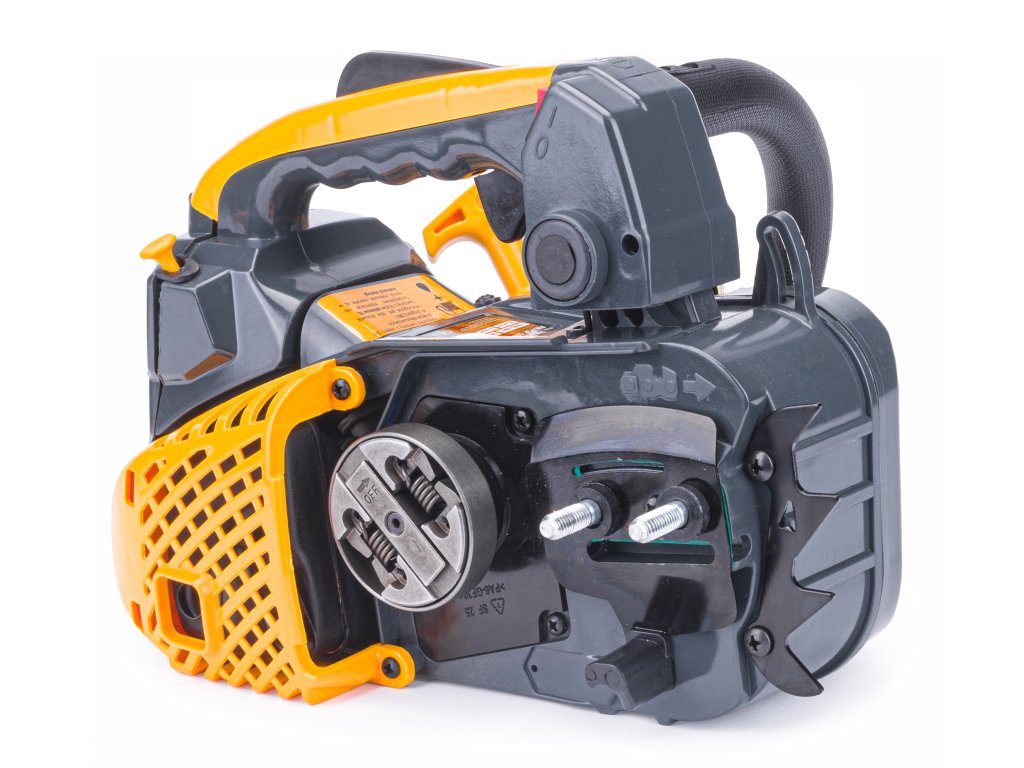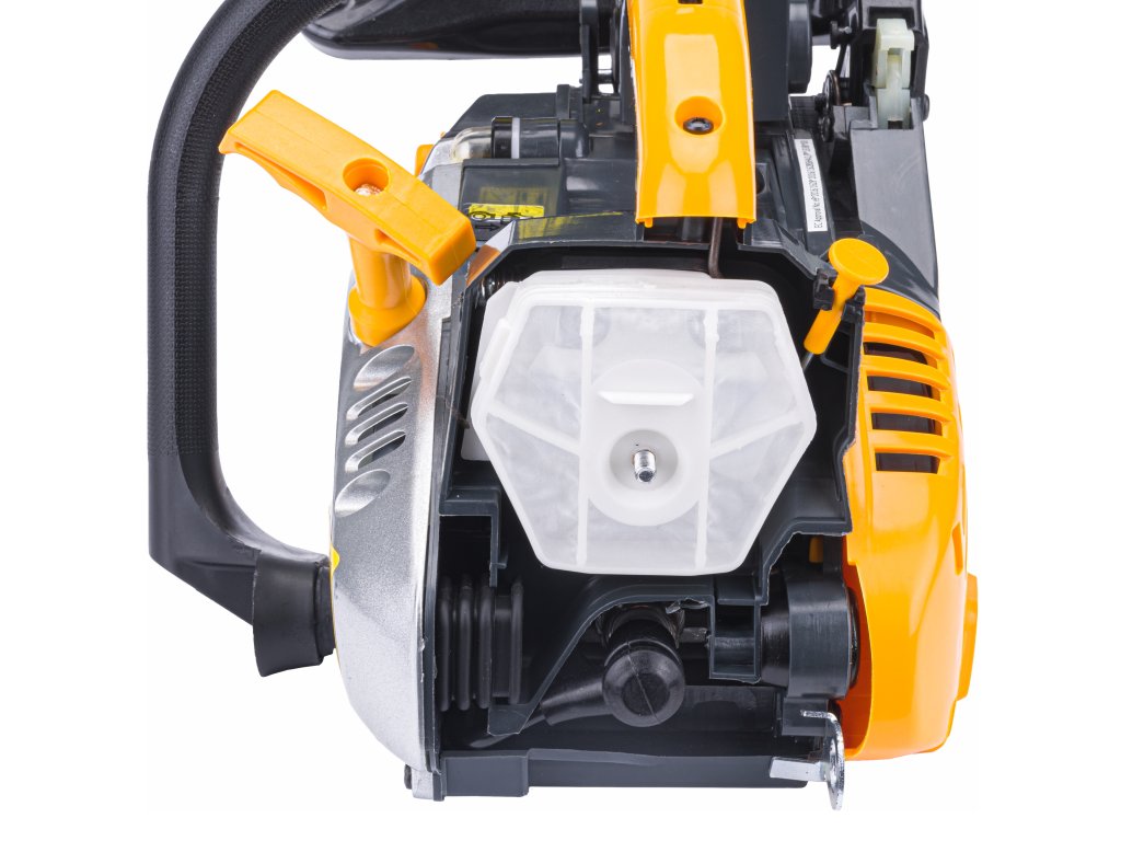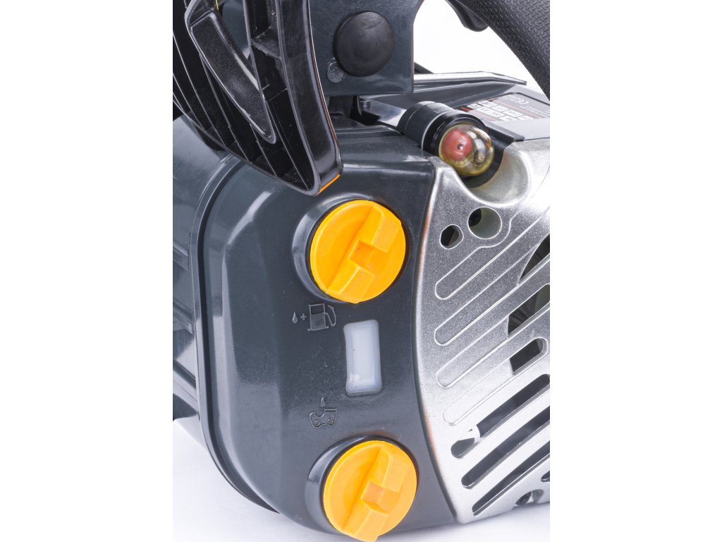 Drujba este echipată cu o pompă care permite livrarea rapidă de combustibil către carburator. Blocul stâng conține intrările de ulei și combustibil clar marcate, împreună cu un indicator de nivel al uleiului.