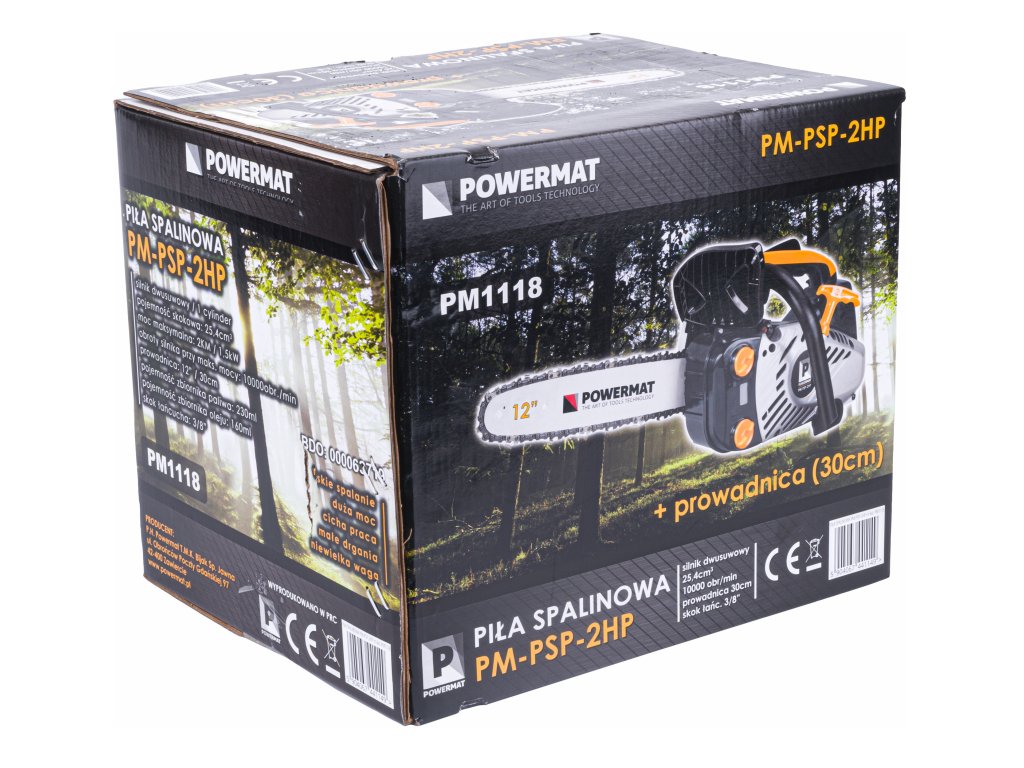 Drujba pe benzină PM-PSP-2CP de la POWERMAT este cel mai nou model destinat utilizării atât de amatori, cât și de profesioniști. Puterea maximă a dispozitivului atinge 2,0 CP datorită motorului cu o capacitate de 25,4 cm3.