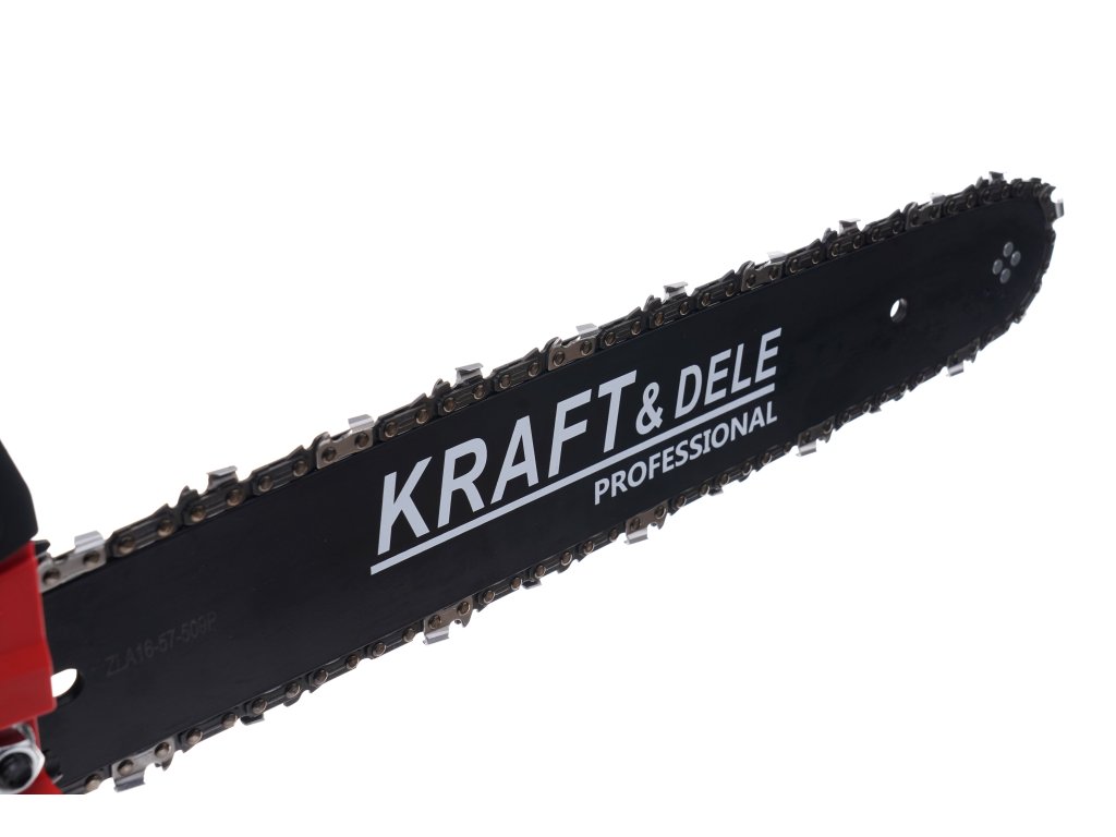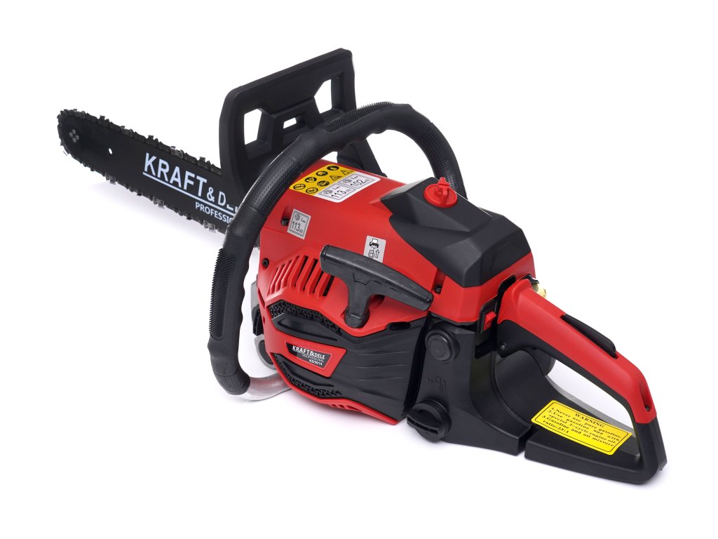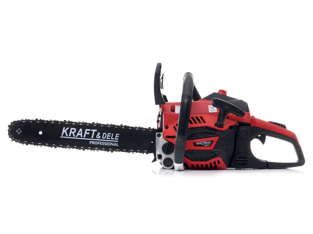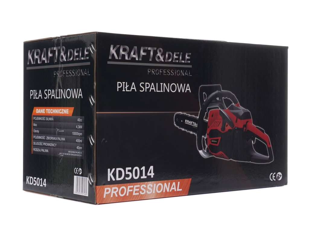 Drujbă pe benzină 4,3 kW / 40 cm KD5014, marca KRAFT&DELE, cu puterea de 4,3 kW, se numără printre cele mai dinamice, având o construcție compactă și robustă. Funcționează fiabil chiar și după mulți ani de utilizare în lucrări cu lemnul, în agricultură, la fermă sau în livadă.