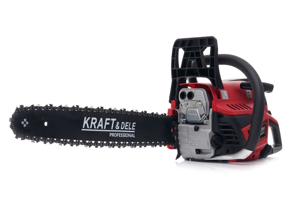 Drujbă pe benzină 5,3 kW / 45 cm KD5016 marca KRAFT&DELE cu puterea de 5,3 kW se află printre cele mai dinamice unelte, având o construcție compactă și robustă. Se dovedește fiabilă chiar și după ani de utilizare la lucrări cu lemn în construcții, la fermă și în agricultură ori în livadă.
