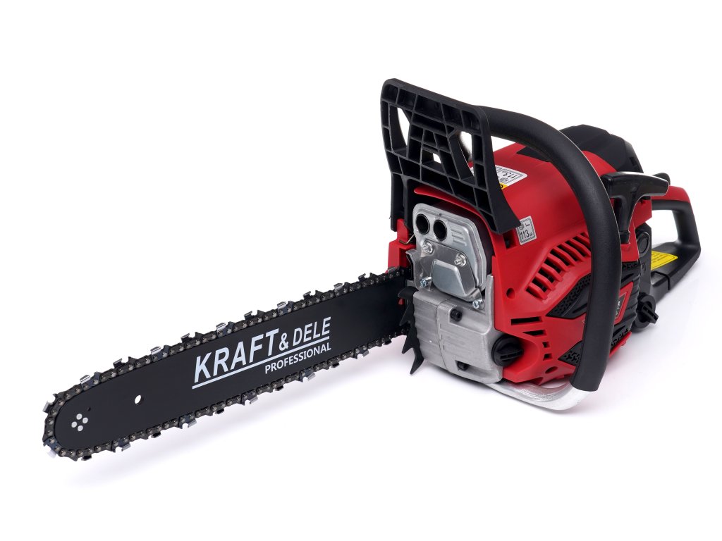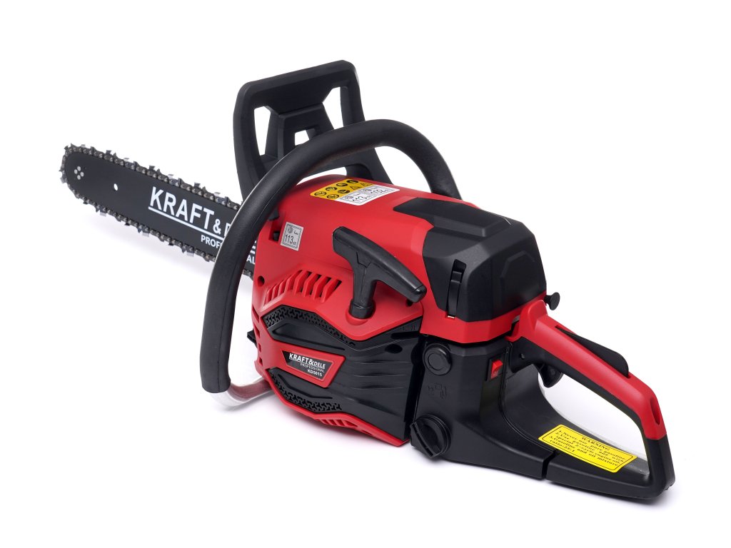 Drujbă pe benzină 5,2 kW / 40 cm KD5015 – Ferăstrău cu motor marca KRAFT&DELE, cu putere de 5,2 kW, face parte dintre cele mai dinamice, având o construcție compactă și robustă. Funcționează fiabil chiar și după ani de utilizare în Lucrări cu lemn la șantier, la fermă și în agricultură, în livadă.