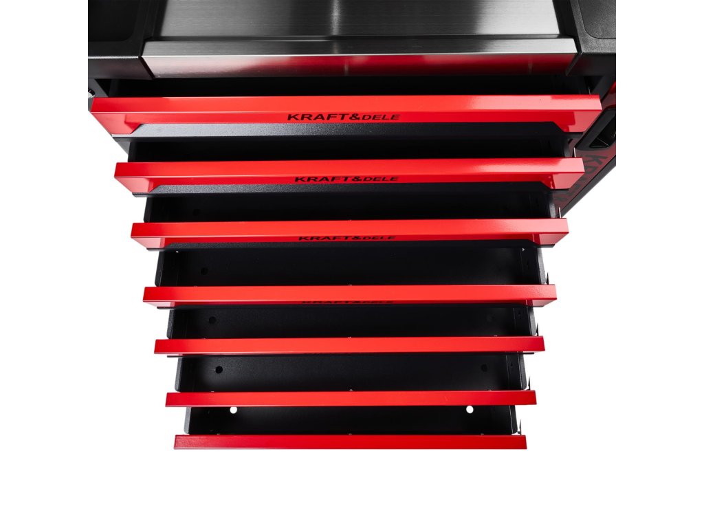 Dulapul profesional pentru atelier de la Kraft&Dele, modelul KD1078, este soluția ideală dacă doriți să vă mențineți garajul sau atelierul organizat. Dulapul nostru vă va ușura mult munca, va crește confortul și eficiența. Acesta va asigura o mai bună organizare și confort în timpul diverselor activități din atelier.