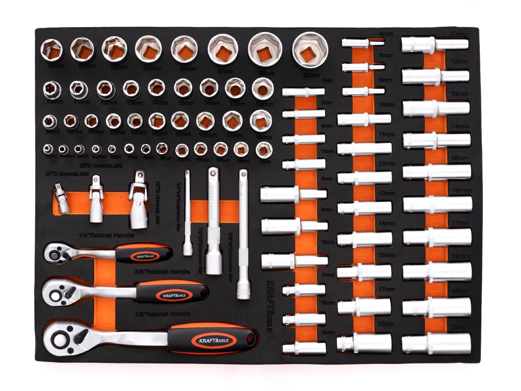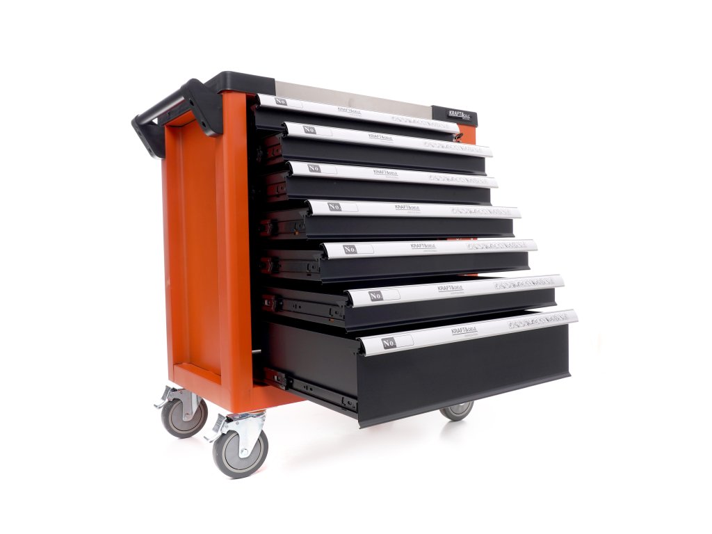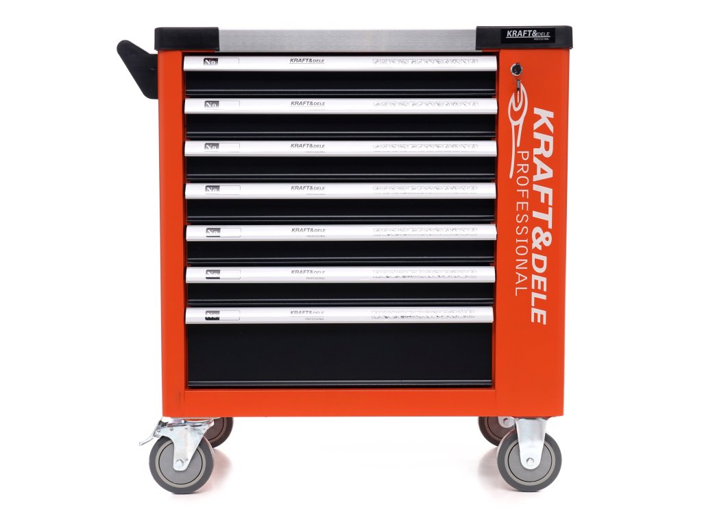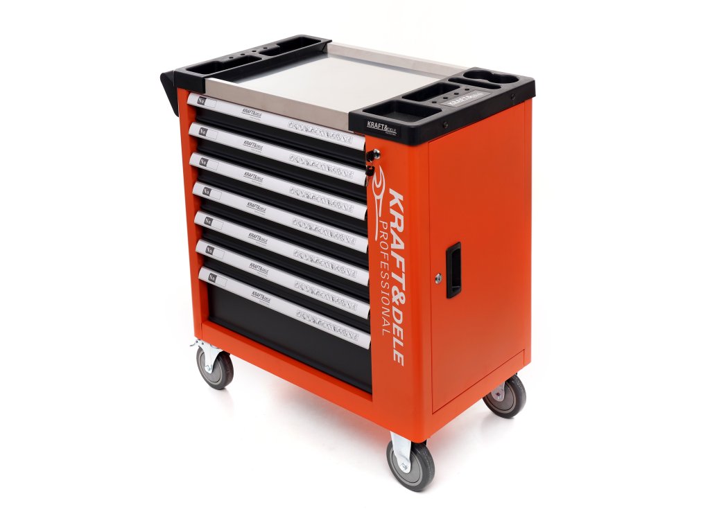 Dulapul pentru unelte marca Kraft & Dele vă ajută să mențineți ordinea la locul de muncă. Asigură o organizare mai bună și un confort în timpul diferitelor lucrări. Dulapul/mobilul are 6 sertare pline cu unelte de marcă renumită. Un sertar este gol. Cumpărând dulapul nostru, veți reduce timpul de lucru prin faptul că veți avea numeroase unelte la un singur loc.