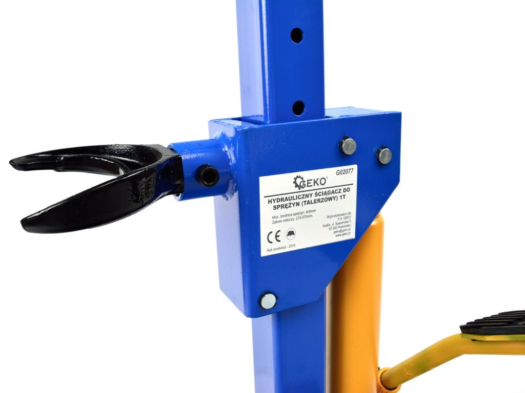 Extrator de arcuri hidraulic 1T G02077 este destinat schimbului de arcuri/amortizoare de tip McPherson în afara vehiculului. Fabricat din profile masive, acest extractor comprimă arcul folosind un piston hidraulic. Poate fi utilizat atât pe vehicule complete fără necesitatea demontării șasiului, cât și pe șasiuri demontate. Dispozitivul se remarcă prin durabilitate, construcție simplă și portabilitate.