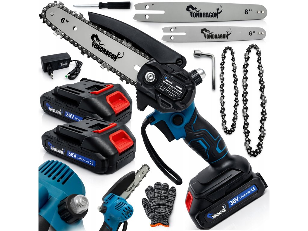 Ferăstrău cu lanț cu acumulator 36V, lamă 6", 8", 2× lanț, 2× acumulator 5,0Ah