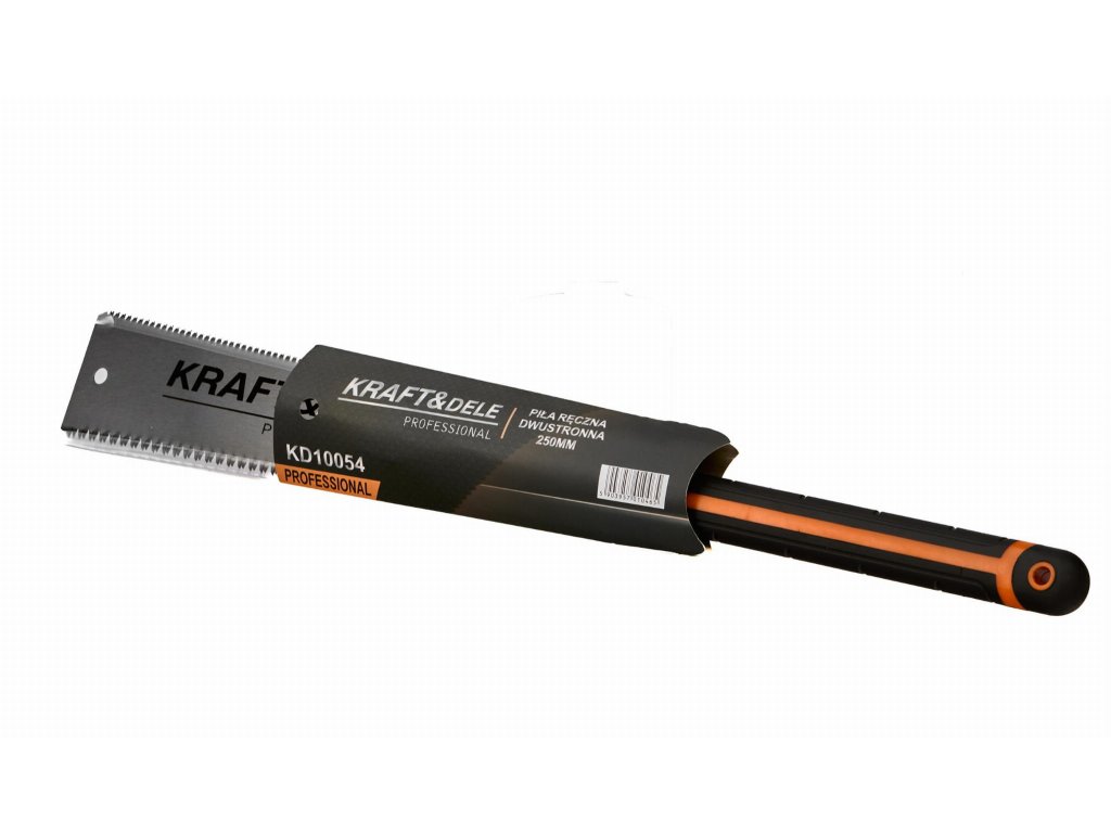 Fierăstrău manual profesional de la marca Kraft&Dele, modelul KD10054, destinat tăierii rapide și ușoare a diferitelor tipuri de lemn. Unul dintre principalele avantaje ale ferăstrăului nostru este că este dublu. Permite tăiere netedă atât transversal (dinți trapezoidali), cât și longitudinal (dinți triunghiulari) în fibrele lemnului.