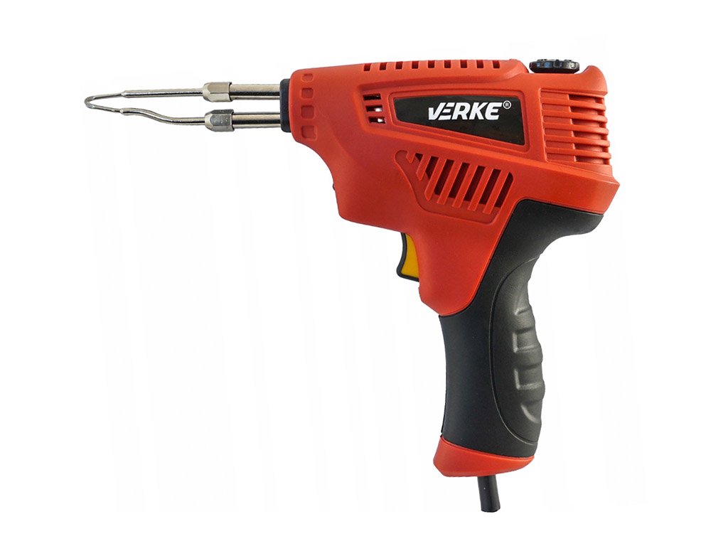 Fierul de lipit cu transformator VERKE este un dispozitiv pentru imbinarea permanenta a elementelor metalice folosind un flux de metal incins, cunoscut sub numele de lipit. Temperatura se realizează prin trecerea unui curent mare printr-un fir care acționează ca un vârf. Controlul temperaturii permite adaptarea optimă la materialele care se îmbină și la parametrii fluxului. Datorită puterii mari de până la 200 W, fierul de lipit se încălzește rapid și este gata de lucru.