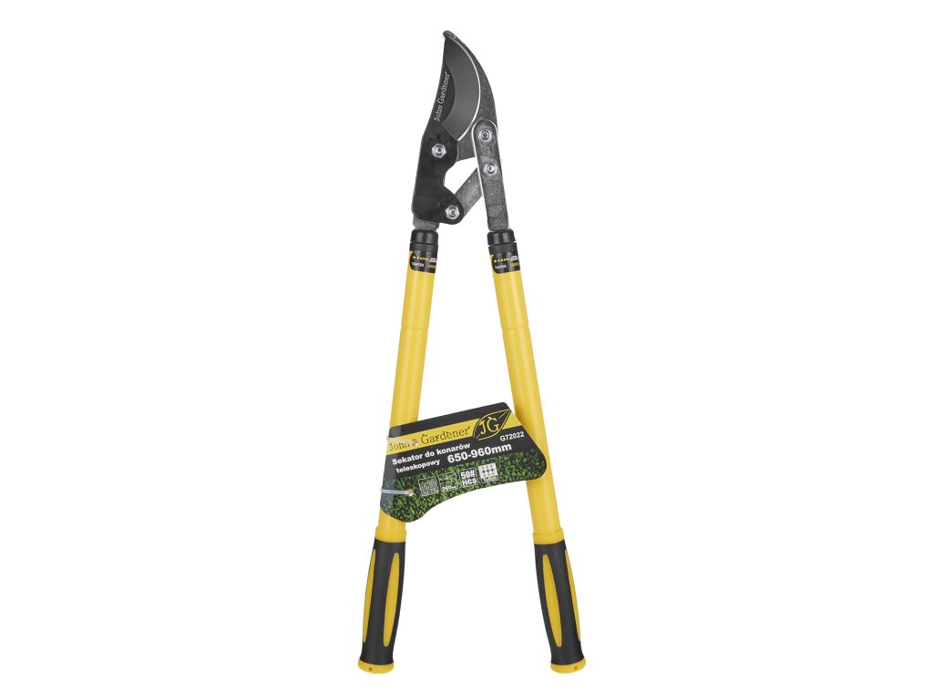 Foarfecă telescopică pentru crengi 675-1025mm, articulată G72022 este un instrument profesional ideal pentru întreținerea grădinii. Este perfectă pentru pregătirea grădinii pentru primăvară și de asemenea excelentă pentru tăierea pomilor fructiferi, astfel încât să pătrundă mai multă lumină în coroana lor. Fabricată din oțel durificat cu acoperire din teflon, oferind rezistență la coroziune și o durată lungă de viață.