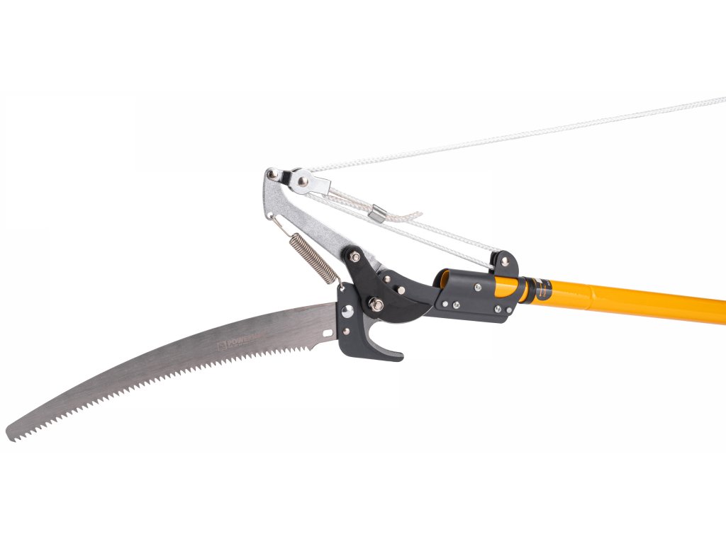 Produsul POWERMAT oferă o soluție perfectă pentru tunderea ramurilor și crenguțelor la înălțime sau în zone dificil accesibile. Datorită mecanismului unic, maximizați puterea de tăiere cu un efort minim. Activarea cuțitului se realizează prin simpla tragere de sfoara cu mânerul atașat. Cuțitul este proiectat pentru a tăia ramuri cu un diametru de până la 30 mm chiar și la înălțimi mari, facilitând munca în condiții dificile.