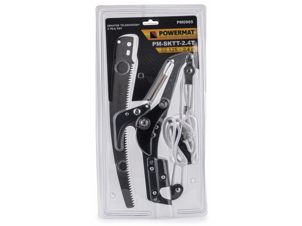 Foarfecă telescopică / Cuțit / Fierăstrău pentru ramuri 2 în 1 – extensie de la 1,25 la 2,4 m