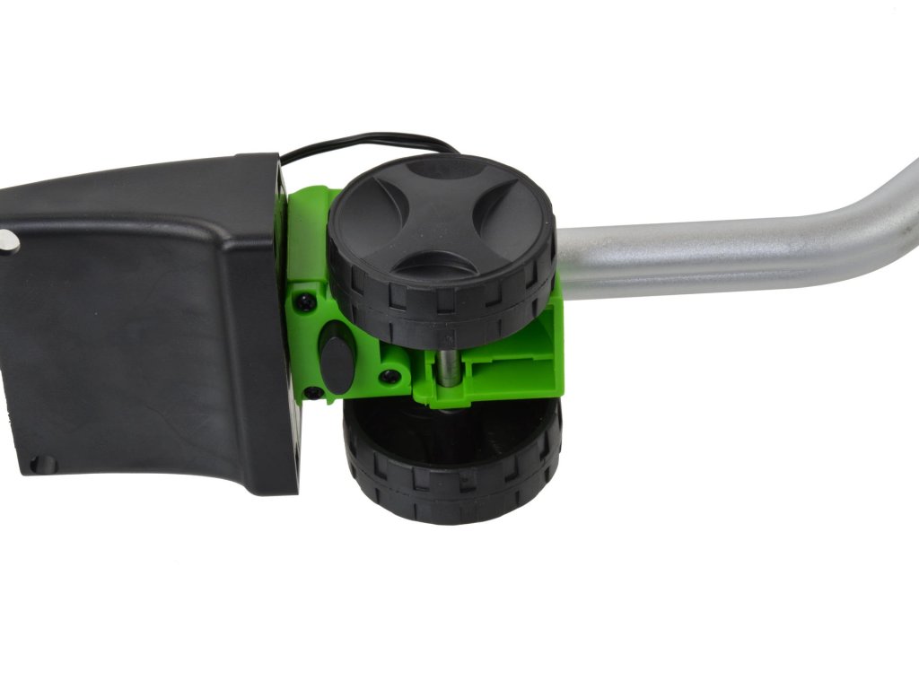 - Două lame interschimbabile: pentru tăierea ierbii și tunderea gardurilor vii și arbustelor