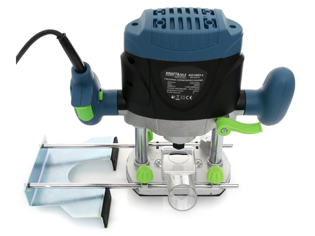 Freză de mână KING SERIES KD1683-Z marca KRAFT&DELE. Aparatul este alimentat de un motor electric puternic, cu o putere maximă de 1900 W, atingând până la 30 000 rot/min!